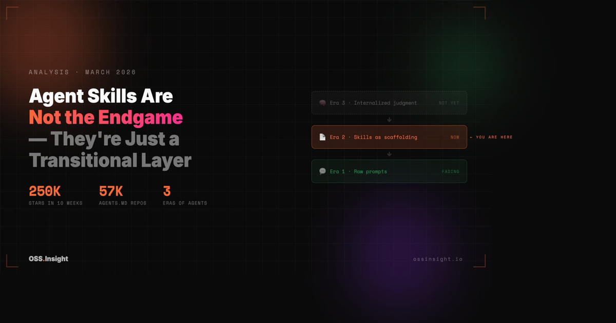 250,000 stars in 10 weeks suggest agent skills are the future. But the data tells a more complicated story — one where skills might be a stepping stone to something we haven't named yet.